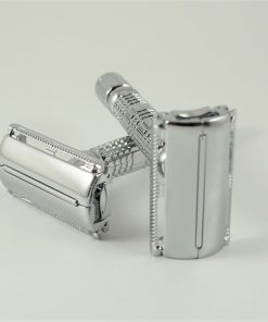 Maquinilla de afeitar reutilizable, apertura mariposa – Cromo
